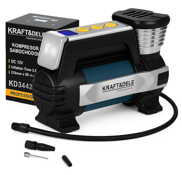 KOMPRESOR SAMOCHODOWY LCD 12V LED LATARKA