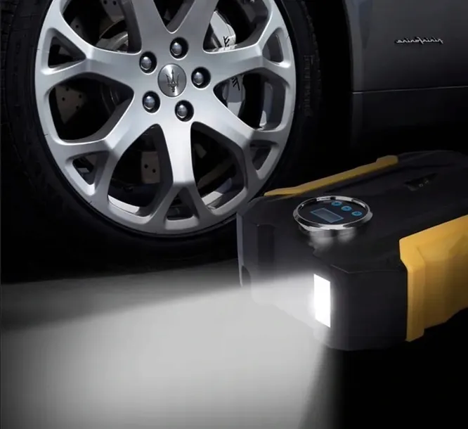 Kompresor umożliwia pompowanie kół pojazdów, materacy, piłek do gry, pontonów itp.