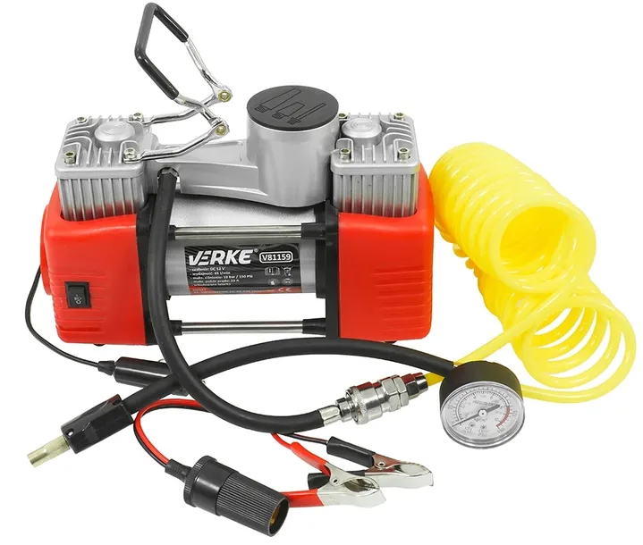Dwutłokowy kompresor samochodowy VERKE 12V idealnie sprawdzi się do: