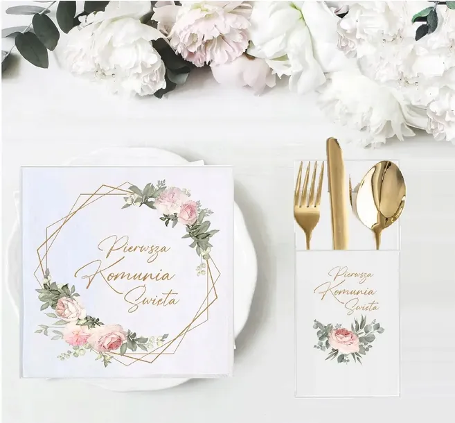 KOMUNIA serwetki dekoracje stołu na Komunię KWIATKI róż