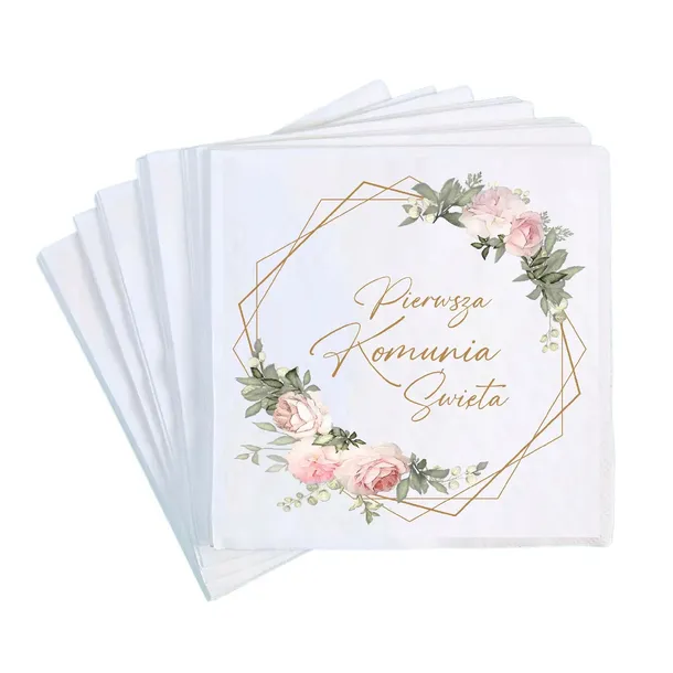 KOMUNIA Serwetki Dekoracje Stołu na Komunię KWIATKI Róż 12 sztuk Ozdoba
