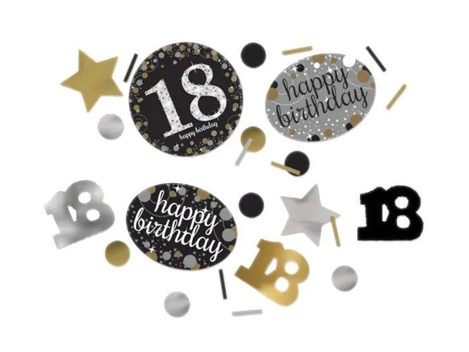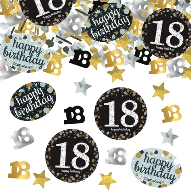 Urodziny to wyjątkowy dzień, a osiemnastka to przełomowy moment! Zadbaj o niezapomniany klimat z konfetti w eleganckiej kolorystyce: złoto-czarno-srebrnej. Idealnie sprawdzi się jako dekoracja stołu, prezentu czy sesji zdjęciowej.