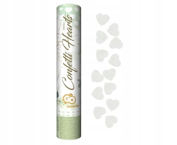 Konfetti strzelające 30 cm serca białe