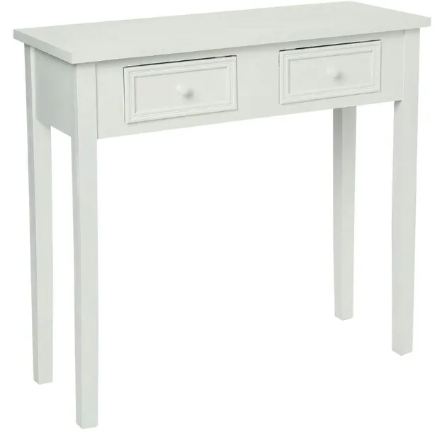 Dzięki wykonaniu z wytrzymałej płyty MDF i sosnowych nóg, Charme jest nie tylko piękna, ale również solidna i trwała.Dzięki dwóm szufladom, możesz przechowywać w niej różnorodne drobiazgi, co pozwoli Ci utrzymać organizację i uporządkować przestrzeń. Minimalistyczny design konsoli sprawi, że będzie ona pasować do każdego stylu wnętrza, a jednokolorowa konstrukcja pozwoli na łatwe dopasowanie do reszty mebli.