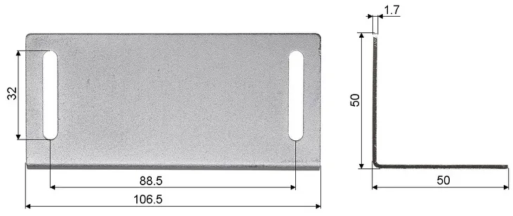 - Wymiary: 105.7 x 38 x 9.8 mm - Kontaktron, 105.8 x 15.8 x 15.4 mm - magnes, 106.5 x 50 x 50 mm - Kątownik