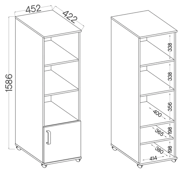 Front: płyta laminowana 16 mm / obrzeże ABS melamina