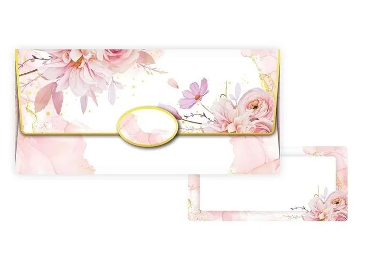 Koperta podarunkowa. Wewnątrz znajduje się ozdobna karteczka, na której można napisać życzenia. Każda koperta jest zapakowana osobno w folię z zawieszką euro.