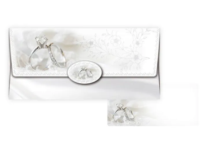 Koperta podarunkowa. Wewnątrz znajduje się ozdobna karteczka, na której można napisać życzenia. Każda koperta jest zapakowana osobno w folię z zawieszką euro.