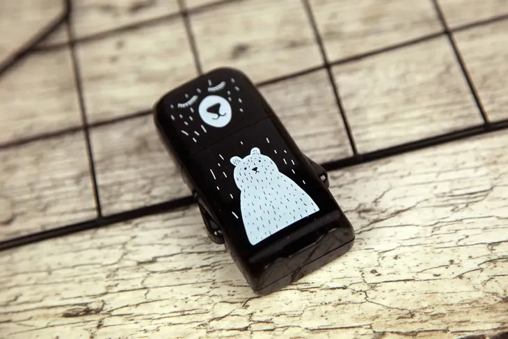 Zamknięcie w postaci nasadki ochronnej z nadrukiem buźki misia.