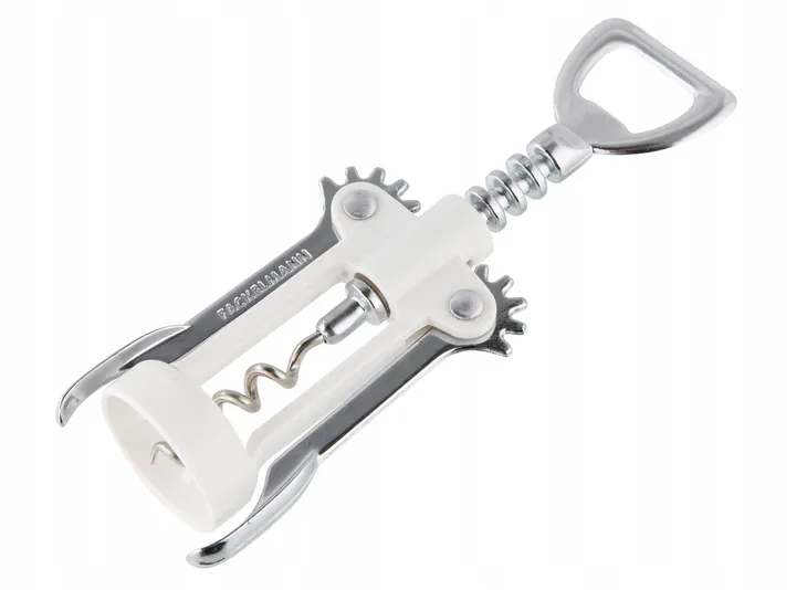Korkociąg dźwigniowy do wina z opcją otwierania kapsli. Klasyczny mechanizm typu "motylek" doskonale sprawdzi się w warunkach domowych. Mechanizm składa się z dwóch dźwigni i śruby, pozwalających sprawnie i bez wysiłku otworzyć zakorkowaną bu-kę. Zastosowanie wysokiej jakości metalu i tworzywa sztucznego sprawia, że całość jest trwała i z pewnością posłuży przez długie lata. Odpowiedni korkociąg to akcesorium niezbędne w każdym domu.