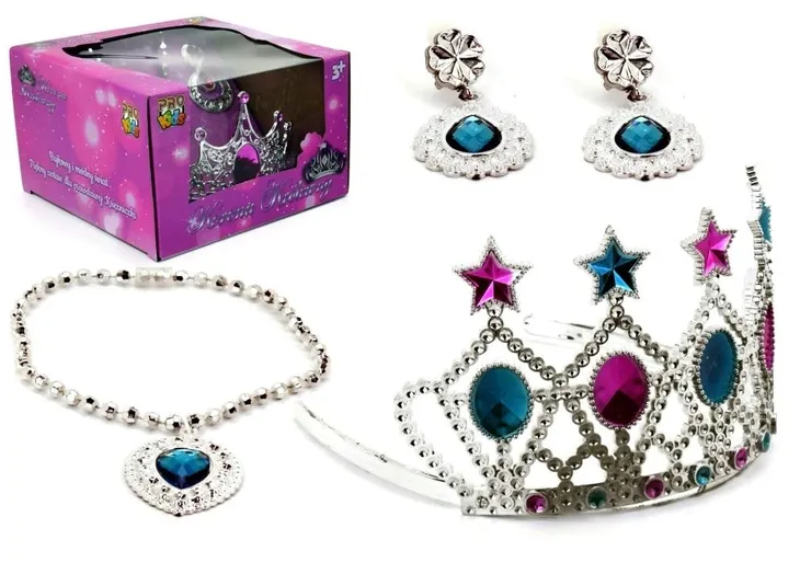 Piękny zestaw dla małej królowej zimy. Korona przyozdobiona pięknymi kryształkami oraz zestaw kolczyków i królewskiego naszyjnika. Każda dziewczynka poczuje się wyjątkowo. Wiek: 3+ Wymiary: 16x16x10 cm Wiek: 3+ Waga: 110 g