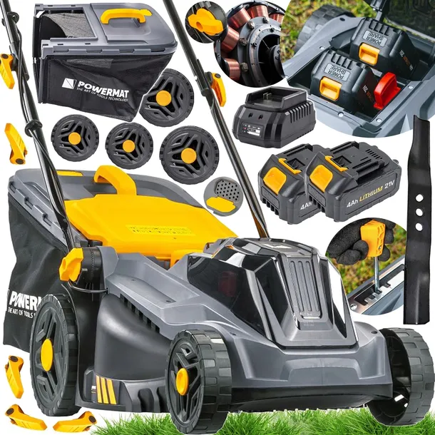 KOSIARKA ELEKTRYCZNA AKUMULATOROWA BEZSZCZOTKOWA 2 x AKU 4Ah KOSZ 42L 38CM