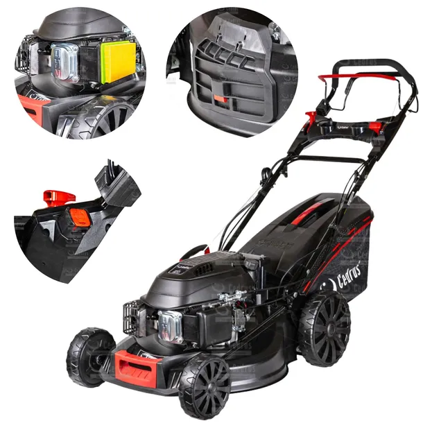 ✔️ Obudowa układu koszącego wykonana jest ze stali, a jej szerokość robocza wynosi 53cm. Na uchwycie zamontowane są dwie dźwignie jedna służy do regulacji obrotów silnika, druga to dźwignia ssania. Uchwyt wyposażony jest także w miejsce na kubek. Łatwość manewrowania zapewniają duże tylne koła oraz dobre wyważenie maszyny. Wszystkie koła są łożyskowane.