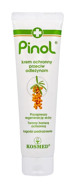 Pinol – krem ochronny pielęgnuje i regeneruje skórę narażoną na powstawanie odleżyn, odparzeń i otarć. Przyspiesza regenerację skóry, tworzy barierę ochronna, łagodzi podrażnienia. Dla najlepszych efektów działania krem powinien być stosowany codziennie na miejsca najbardziej narażone na powstawanie odleżyn, czyli plecy, pięty i łokcie.