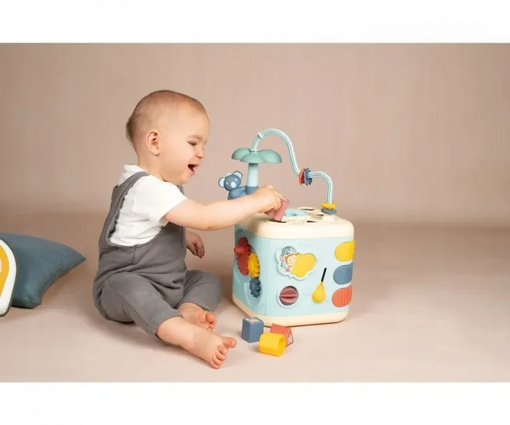 • Wielofunkcyjna, sensoryczna kostka od Little Smoby wspiera rozwój wielu umiejętności maluszka: rozwija zręczność, pobudza wyobraźnię oraz uczy kolorów a do tego wykonana w stonowanej kolorystce.