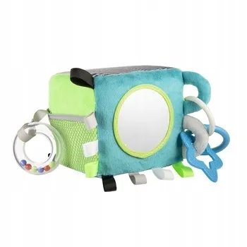 Kostka sensoryczna BEARS została wykonana z miłego w dotyku materiału o różnorodnej teksturze. Doskonale stym-uje rozwój koordynacji wzrokowo-słuchowej i motorycznej dziecka. Zabawka kryje wiele niespodzianek, które zajmą malca na długi czas. Posiada dzwoneczek, grzechotkę oraz elementy szeleszczące, bezpieczne lusterko i gryzaki elastyczne.Uniwersalny zaczep pozwoli na zaczepienie zabawki do wózka, fo-ika, łóżeczka. Zabawka przeznaczona dla dzieci w wieku 3m+.