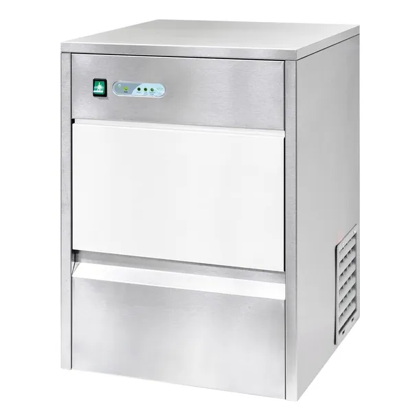 przeznaczona do hoteli, restauracji, barów, dyskotek oraz barów szybkiej obsługi "Fast Food" tworzenie kostek metodą "zanurzeniową" posiada zasobnik na lód izolowane ścianki wymagane podłączenie do wody i grawitacyjnego odpływu używać wody o twardości do 6°dH w skali niemieckiej wydajność uzalezniona od temperatury wody zasilającej (15-20 kg/24h) czynnik chłodniczy R600a/38g zużycie wody ok 4.2 l/kg