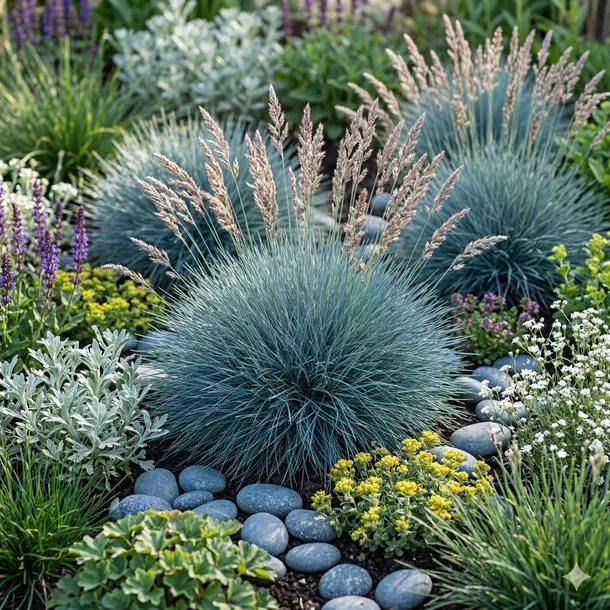 To jedna z najbardziej rozpoznawalnych i efektownych traw ozdobnych, ceniona za swój unikalny, stalowoniebieski kolor. Tworzy niezwykle regularne, gęste i niskie kępy o jeżowatym kształcie, które zachowują swoją barwę przez cały rok. Jest to roślina o ekstremalnie niskich wymaganiach, która najlepiej czuje się w pełnym słońcu – im więcej promieni słonecznych otrzyma, tym jej liście stają się bardziej błękitne i intensywne. Cechuje się całkowitą mrozoodpornością oraz niezwykłą wytrzymałością na suszę, co czyni ją idealnym wyborem dla zapracowanych ogrodników.