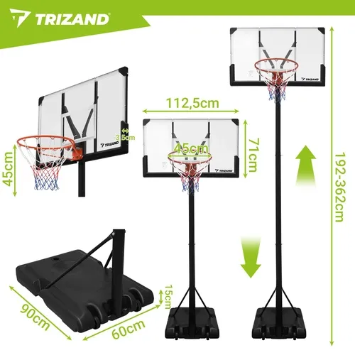 Polska marka Trizand – sprawdzony produkt od polskiego producentaRegulacja wysokości 135–305 cm – dopasowanie do dzieci i dorosłychStabilna konstrukcja – bezpieczna gra i treningWbudowane kółka – łatwe przemieszczanie koszaDuża tablica i obręcz 45 cm – realistyczne warunki gryMożliwość dociążenia podstawy – większa stabilnośćUniwersalne zastosowanie – do domu i na zewnątrz