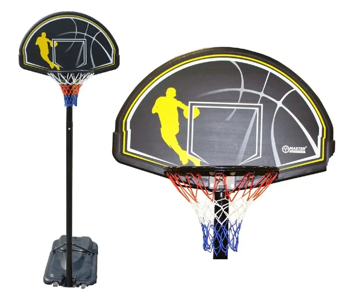 Przenośny Zestaw do Koszykówki Ulicznej MASTER - główną zaletą jest łatwa i szybka regulacja wysokości. Zestaw może być regulowany w zakresie od 2,45 do 3,05 m. Jego ogromna podstawa pomieści 120 litrów wody, co zapewnia maksymalną stabilność podczas gry. Płyta wykonana jest z tworzywa sztucznego, tłumiona. Średnica kosza wynosi 45 cm. Dodatkowym atutem są kółka dzięki czemu można w łatwy sposób przetransportować całą konstrukcję.