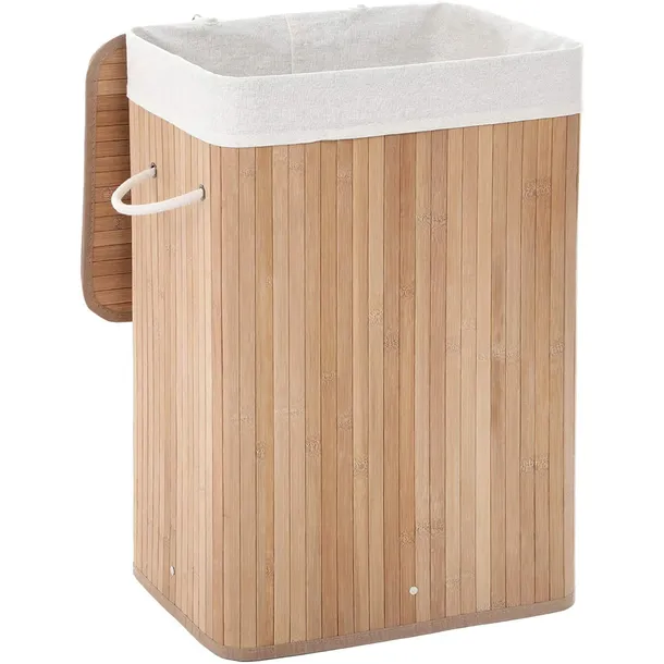 Praktyczny kosz na pranie i bieliznę o pojemności 72 l został wykonany z bardzo dobrze prezentujących się bambusowych listewek połączonych ze sobą siateczką. Odpowiedni dobór materiałów sprawia, że produkt jest odporny na ewentualne uszkodzenia.