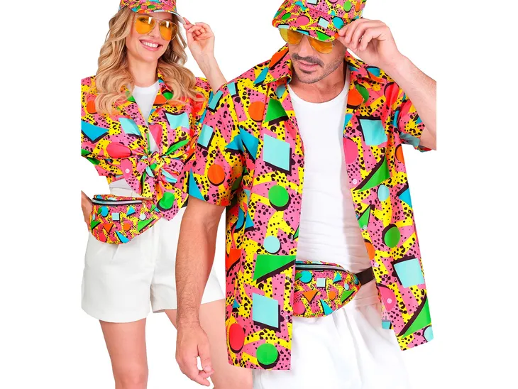Koszula w stylu retro z kolorowym wzorem.Idealny dodatek na imprezę w stylu disco.Rozmiar: S/M.Skład: 100% Poliester.