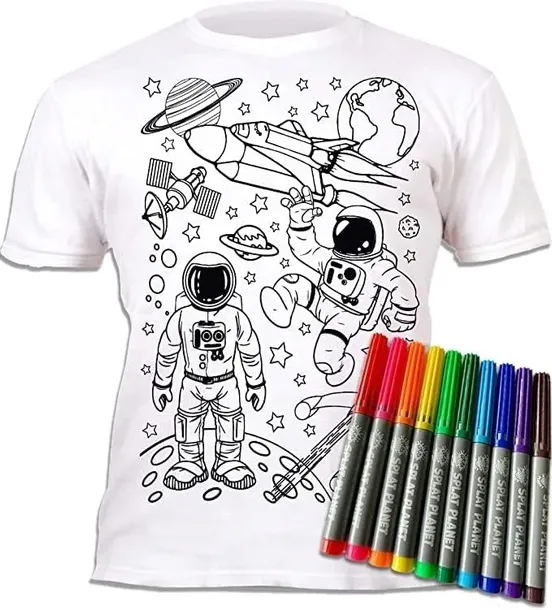 Koszulka do malowania KOSMOS T-shirt + 10 zmywalne markery 5-6 lat