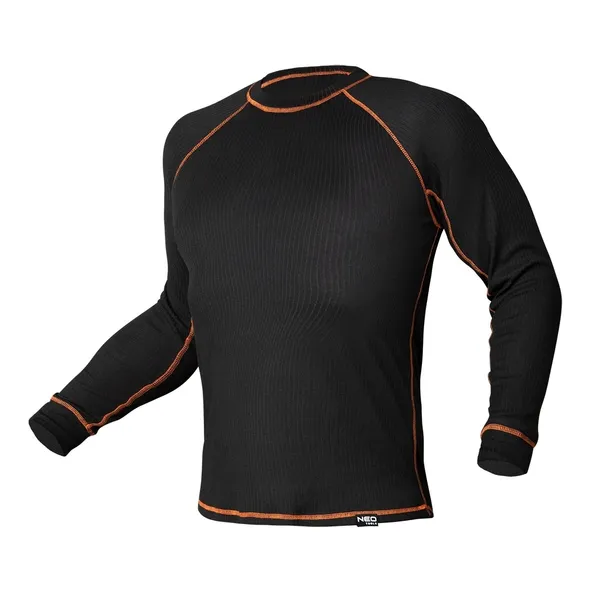 Koszulka termoaktywna BASIC NEO w kolorze czarnym z pomarańczowymi przeszyciami. Idealny wybór, gdy potrzebna jest dodatkowa ochrona przed zimnem. Nie ogranicza ruchów, można ją założyć pod bluzę lub polar. Dzięki temu, że została wykonana z oddychającego materiału, zapewnia suchość i dobrą wentylację. Dopasowany do ciała krój zapewnia maksymalną wygodę podczas każdej aktywności. Koszulka termoaktywna to niezastąpiony strój w czasie pracy w zimie oraz uprawiania wszelkiej aktywności fizycznej w chłodne i zimne dni. Produkt posiada certyfikat CE na zgodność z normą EN ISO 13688:2013. Dostępny w rozmiarach S/M-XXL/XXXL.