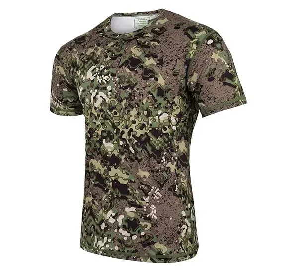 Całoroczna koszulka termoaktywna w kamuflażu MAPA, wyprodukowana na bazie dzianiny poliestrowej, zapewnia szybkie i skuteczne odprowadzanie wilgoci powstałej w czasie wysiłku, co sprzyja utrzymaniu odpowiedniego klimatu przy ciele użytkownika.