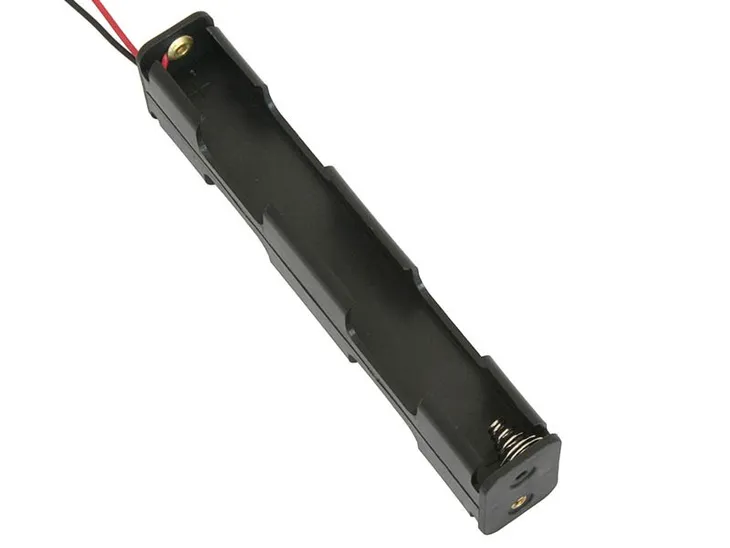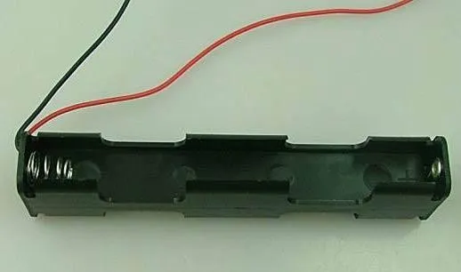 Pojemnik do umieszczenia czterech baterii typu R6 (AA, Mignon) z wyprowadzonymi przewodami montażowymi.