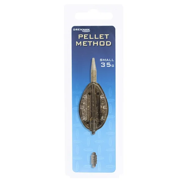 Koszyki Drennan Pellet Method Feeders zostały zaprojektowane i dopracowane z udziałem pięciokrotnego Mistrza Świata Alana Scotthorne na przestrzeni ponad dwóch lat. Koszyki te są łatwe w napełnianiu zanętą i jej dociskaniu bez użycia foremki, gdyż kciuk dobrze dopasowuje się do jego kształtu. Produkt posiada zaokrąglone ścianki i wewnętrzne zęby, aby bezpiecznie utrzymać pellet, czy mieloną zanętę. Otwarte końce koszyka pozwalają na wypłukanie zanęty dokładnie w miejscu nęcenia. Koszyki Pellet Method Feeder posiadają obciążenie z przodu, aerodynamiczny kształt dla zwiększenia dystansu i dokładności wyrzutu. Zastosowany schodkowy, żebrowy ciężarek u podstawy zapewnia dodatkową przyczepność do podłoża podczas połowu blisko wysp, czy płycizn przeciwległego brzegu. Perfekcyjnie ergonomiczny koszyk, który pomaga złowić rybę.