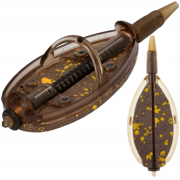 Method Feeder to jedna z najskuteczniejszych technik połowu gruntowego. Podajnik Douglas Q.M.F. to ulepszona, żebrowana konstrukcja idealnie utrzymująca zanętę z systemem szybkiej wymiany koszyczka. Aerodynamiczny kształt gwarantuje bardzo dalekie rzuty, a specjalny zderzak z tworzywa zabezpiecza "towar" podczas uderzenia o wodę.