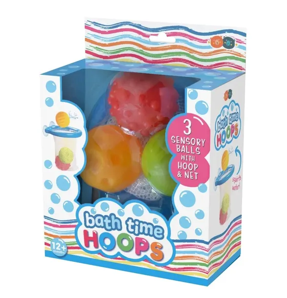 Zestaw3 piłeczek do kąpieli wraz z koszem i siatką od producenta zabawek do kąpieli Barney and Buddy.