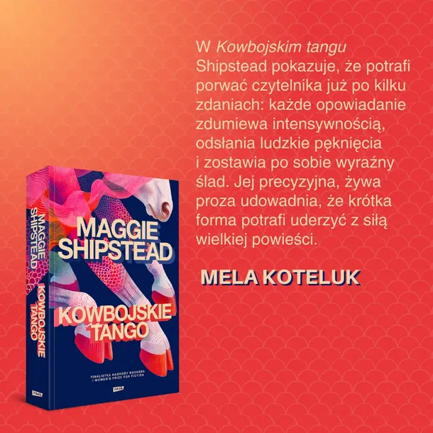 Hipnotyzujący kalejdoskop opowieści o odważnych i zniszczonych Finalistka Nagrody Bookera i Women’s Prize for Fiction po raz kolejny zachwyca pisarskim kunsztem. Wielkim kręgiem pokazała, że potrafi tworzyć monumentalne powieści. Kowbojskim tangiem udowadnia, że jest mistrzynią różnych form opowiadania ludzkich historii i jedną z najważniejszych współczesnych pisarek. Ingrid szuka w lawinie zaginionego kochanka i cudem wymyka się śmierci. Podróż poślubna Lyli i Billa w rumuńskie góry kończy się niewyobrażalną tragedią. Sammy, milcząca kowbojka, ucieka z piekła. Pragnie tylko wybawienia, a na lata wikła się w skomplikowany miłosny trójkąt. Niczym w pełnym emocji tańcu na powierzchnię przedzierają się tu najgłębiej skrywane niepokoje i pragnienia. Maggie Shipstead z czułością i błyskotliwą ironią pokazuje, że pod skórą każdego człowieka zawsze buzują te same uczucia. Głód miłości i tęsknota za byciem zauważonym.