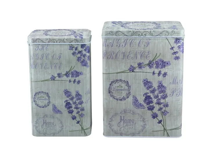 Komplet dwóch puszek z pięknym lawendowym wzorem - powiewlata w każdej kuchni. -