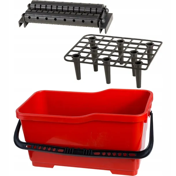 - W komplecie kratka 61636 która umożliwia separowanie czystszej wody od brudnej w wiadrze oraz usuwanie nadmiaru zaprawy, mycie i równomierne namaczanie pacy z gąbką