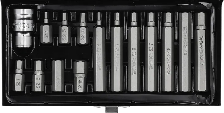 końcówki: 3/8” (9.5 mm): H4, H5, H6, H7, H8, H10, H12 o długości 30 mm i 75 mm