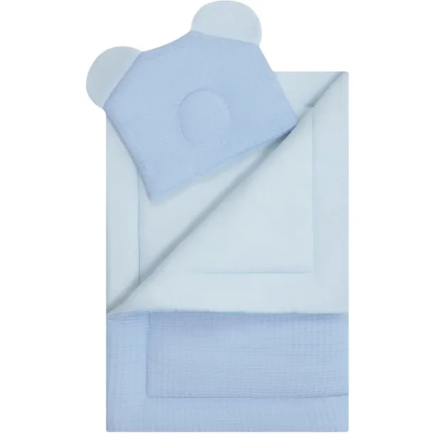 Zestaw charakteryzuje się optymalną wielkością i grubością (ok. 3 cm), zapewniając dziecku przytulne ciepło i niesamowitą wygodę. Środek kompletu wypełniony jest delikatną antyalergiczną włókniną.
