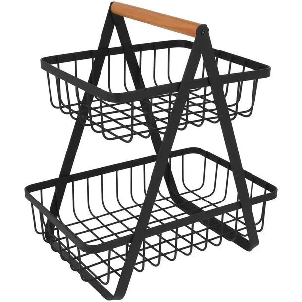 Dwupoziomowy design: Koszyk posiada dwa poziomy, umożliwiając przechowywanie większej ilości owoców i warzyw na ograniczonej przestrzeni.