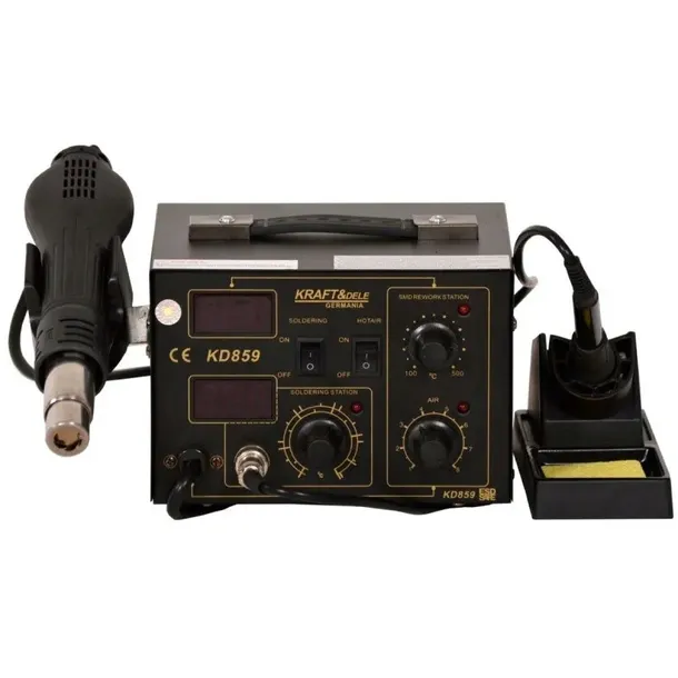 Stacja lutownicza, wykorzystuje wiele nowinek technicznych, korzysta z systemu kontroli temperatury do szybkiego reagowania w czasie rzeczywistym, posiada regulator obu systemów, zarówno lutownicy jak i gorącego powietrza.