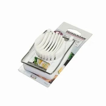 Plastikowa krajarka do jajek z systemem krojącym ze stali nierdzewnej. Możemy nią kroić zarówno w plasterki jak i łódeczki. Praktyczny artykuł w Twojej kuchni.