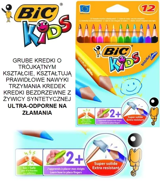 GRUBE TRÓJKĄTNE KREDKI BIC EVOLUTION TRIANGLE 12 KOLORÓW