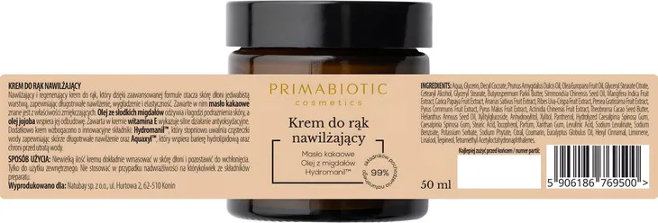 KREM DO RĄK NAWILŻAJĄCY PRIMABIOTIC Dłonie Regeneracja Masło Shea 50 ml.