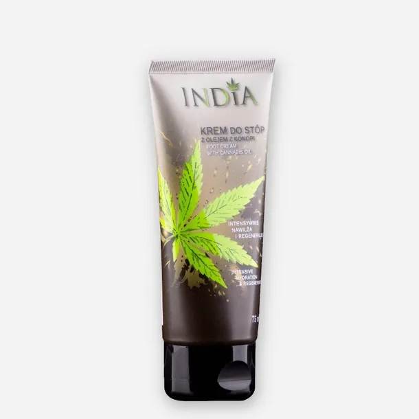 Krem do stóp INDIA, dzięki zawartości oleju konopnego, daje szybki efekt nawilżenia i regeneracji od razu po zastosowaniu. Lekka formuła kremu wnika głęboko w naskórek, regenerując spękania. Bezpośrednio po aplikacji pozwala na natychmiastowe odczucie miękkości stóp.