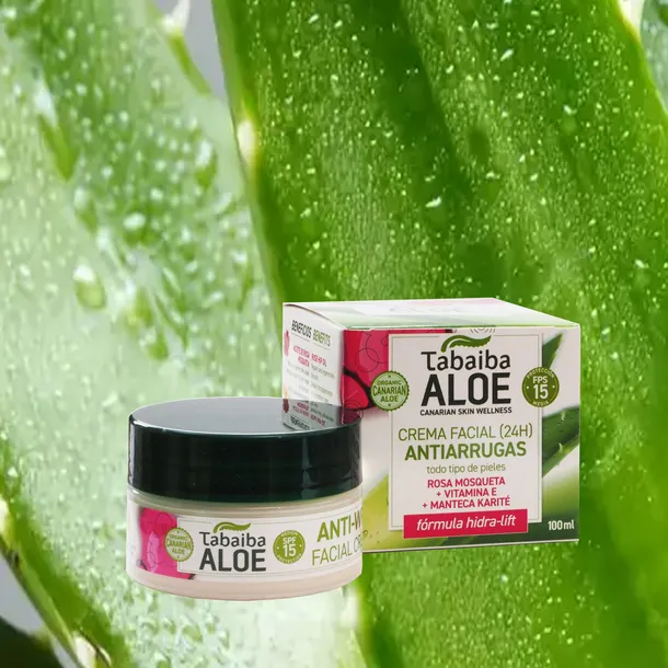 Drugim ważnym składnikiem kremu przeciwzmarszczkowego jest aloes, ma on działanie nawilżające, łagodzące i regeneracyjne. Ta roślina ma bardzo dobry wpływ na naszą skórę, jest bogata w witaminy, minerały, aminokwasy i enzymy które sprawią, że skóra będzie dobrze odżywiona i nawilżona. Aloes ma także właściwości łagodzące podrażnienia skóry.