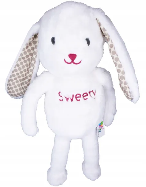 Puchaty słodziak stworzony został specjalnie do przytulania. Króliczek Sweety posiada parę długich uszu i milutkie futerko, które aż chce się głaskać. Wewnętrzną stronę uszek zdobi kolorowy materiał. Przytulanka umili czas drzemki, towarzyszyć może również w przeróżnych zabawach. Króliczek dostępny jest także w innych kolorach.