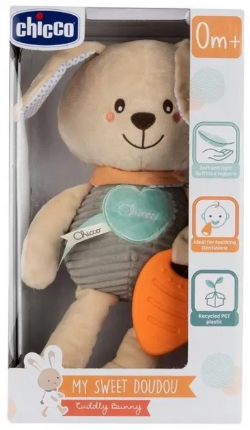 MY SWEET DOUDOU KRÓLICZEK Z GRYZAKIEM - idealna przytulankaGrupa wiekowa: 0M+KRÓLICZEK MY SWEET DOUDOU to doskonała pierwsza zabawka dla niemowląt, zaprojektowana z myślą o zapewnieniu komfortu i bezpieczeństwa. Ten wyjątkowy pluszowy króliczek, mierzący 30 cm, wykonany jest z najwyższej jakości materiałów, które dostarczają maluchowi różnorodnych wrażeń sensorycznych. Dzięki swoim funkcjom i uroczemu wyglądowi szybko stanie się ulubionym towarzyszem Twojego dziecka. Cechy i zalety Króliczka MY SWEET DOUDOU: - Miękki i idealny do przytulania - Wysokiej jakości materiały: Wykonany z miękkiego weluru, króliczek sprawdzi się idealnie jako przytulanka. - Sensoryczna stymulacja: Króliczek zawiera różnorodne tkaniny, które wspierają rozwój sensoryczny malucha poprzez różne tekstury i dźwięki. - Łatwy do chwytania - długie, szeleszczące uszy ułatwiają maluchowi uchwycenie zabawki, a jednocześnie dostarczają dodatkowych bodźców dźwiękowych. - Idealny na okres ząbkowania gryzak w kształcie marchewki: Dołączony gryzak jest idealnym rozwiązaniem na okres ząbkowania, przynosząc ulgę w tym trudnym czasie. - Łatwość utrzymania w czystości dzięki możliwości prania w pralce: Dzięki temu króliczek jest zawsze czysty i gotowy do przytulania, co zapewnia higienę i bezpieczeństwo Twojego dziecka. - Estetyka, praktyczność i uniwersalny design: Jednolite, stonowane barwy sprawiają, że króliczek jest odpowiedni zarówno dla chłopców, jak i dziewczynek. - Dbałość o detale: Każdy element zabawki został starannie zaprojektowany i wykonany, co czyni ją idealnym pomysłem na prezent. - Opakowanie z recyklingu: Produkt jest zapakowany w opakowanie wykonane z papieru certyfikowanego przez FSC(R), wspierając ochronę lasów i bioróżnorodności. Informacje dodatkowe: Wymiary zabawki: 16 x 9 x 30 cm Wymiary opakowania: 17 x 11 x 30 cm KRÓLICZEK MY SWEET DOUDOU to nie tylko zabawka, ale również nieoceniony przyjaciel, który towarzyszy dziecku od pierwszych dni życia, zapewniając mu poczucie bezpieczeństwa i komfortu.