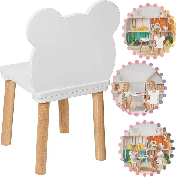 krzesełko dla dzieci Miś białe