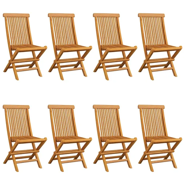 Krzesła ogrodowe z czarnymi poduszkami, 8 szt., drewno tekowe