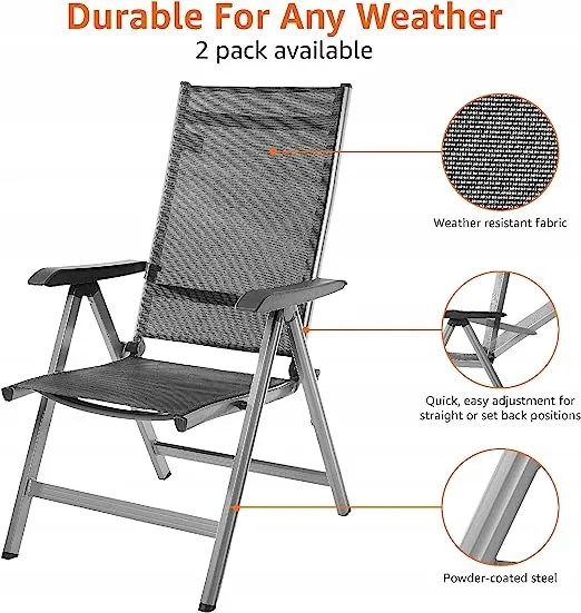 - W zestawie: Zestaw 2 regulowanych i wytrzymałych krzeseł ogrodowych. Obsługuje maksymalną wagę do 113 kg (17 i 11,1 funta)
